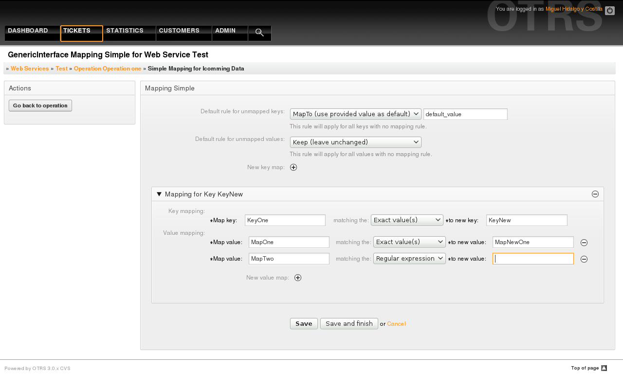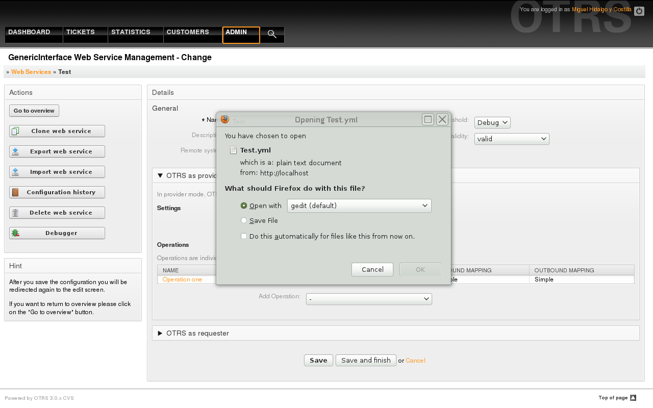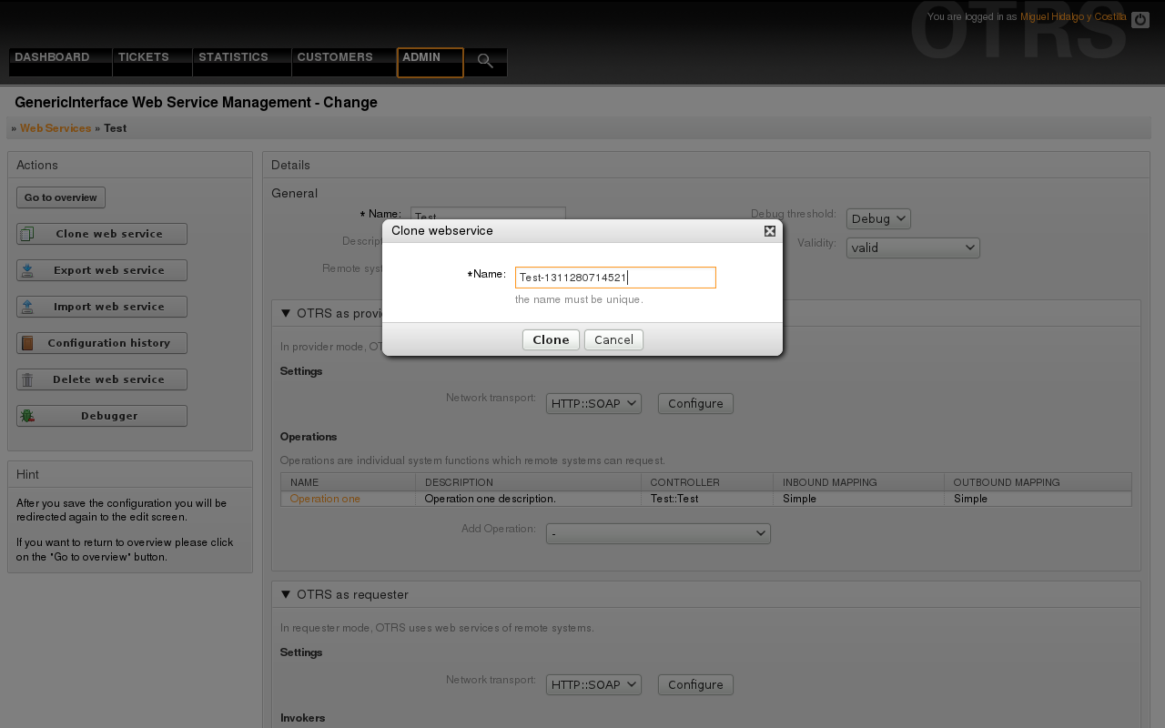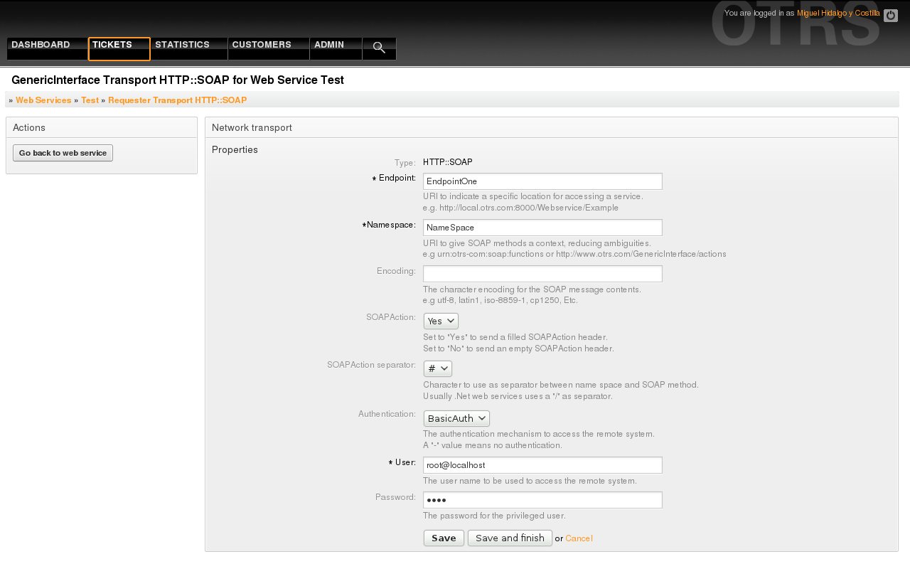 The heart of the Web Service is its configuration, where it is defined what actions the web service can perform internally (Operation), what actions the OTRS request can perform Remote System (Invokers), how data is converted from one system to the other (Mapping), and over which protocol the communication will take place (Transport)